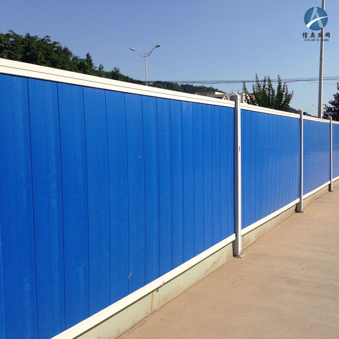 施工圍擋由磚砌底座、立桿、(含防水套管)、左右承重梁、PVC板構成,底座為5024高的墻,外面層貼文化磚。本標段其他沿岸挑選一般深藍色彩鋼瓦,應用薄厚不小于,彩鋼瓦采用60X4角鐵做框架,施工圍擋反面采用30mm無縫鋼管做支撐點,穩定到具有地面上,施工圍擋支腳位置電焊焊接建筑鋼筋棍打孔固定不動在路面上,施工圍擋的抗風力。